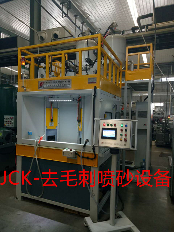 吉川科技JCK系列压入式液体喷砂去毛刺设备颠覆了压入式液体喷砂机的行业零空白,目前也是国内唯一一家研发生产出压入式液体喷砂去毛刺设备厂家。流体磨料清理速度可达到每秒180米,通过特殊射流喷嘴可以去除机械零部件切削、磨削后形状边缘和内孔交叉孔毛刺,替代毛刷和热法去毛刺等工艺。