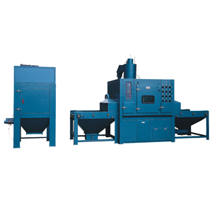特点: 1、采用三角皮带输送工件,不会积砂,皮带速度配合喷砂工艺要求可实现变频调速; 2、每支喷枪角度可自由调节枪架实现自动变频摇摆,并可定点喷砂,灵活性强、适用性广; 3、采用先进的上旋风分离系统配置,粉尘分离效果好,喷砂效率高; 4、采用PLC电气先进控制系统,自动化程度度、稳定性好、故障率低: 5、喷嘴采用特制高耐磨陶瓷材料,使用寿命长; 6、独立的布袋式除尘系统,抽尘通风效果良好:(也可选用:脉冲滤芯式除尘); 7、磨料回收采用螺旋输送及气力回收相结合,回收稳定性好;