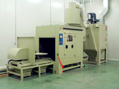 六 砂料分选 通过回收上来的砂料进入砂料循环系统,该砂料循环系统配备了风选装置,通过风选装置,破损的砂料及粉尘被分离出来,风选的风量大小可以调整。通过风选后的砂料进入到喷砂仓中,粉尘被分离出去,进入到除尘器中。该分选方式是采用重心、高速旋转的方式。